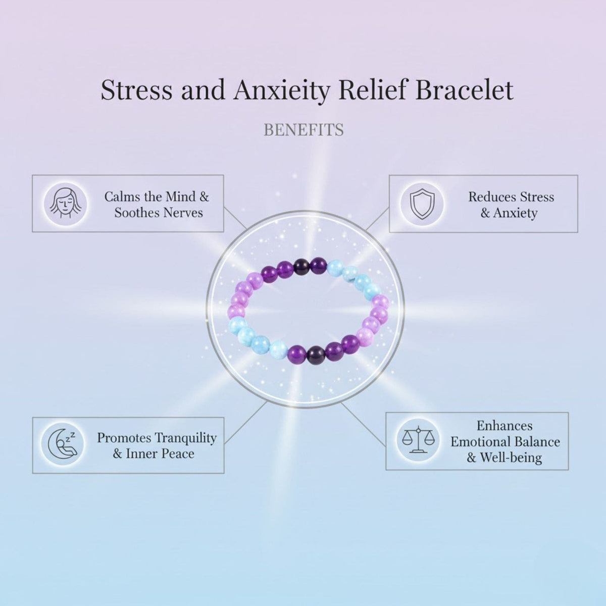 - Charge: Hold the bracelet in your dominant hand. Sit comfortably, close your eyes, and take three deep breaths. Visualize a soft, white or lavender light enveloping the stones.