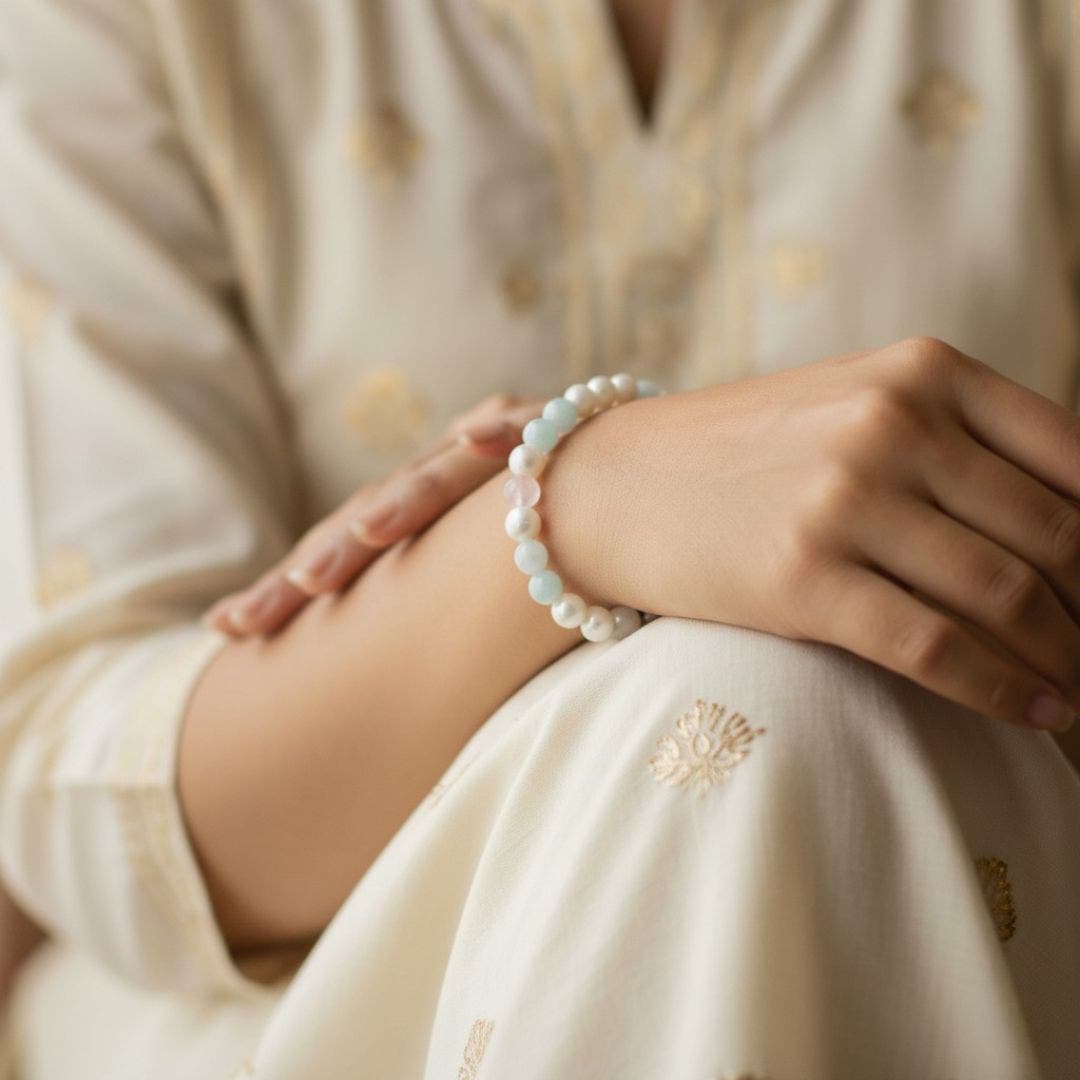 Pearl: Pearls are formed through a gentle, nurturing process, making them symbols of purity, wisdom, and inner light. They help to center your energy and reflect your most authentic, peaceful self out into the world.