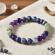 The bracelet brings together a powerful combination of Amethyst, Lapis Lazuli, Labradorite, and Sodalite. This quartet forms a sacred geometry of energy designed to activate the third eye and crown chakras, facilitating a clear channel between your analytical mind and your higher self.